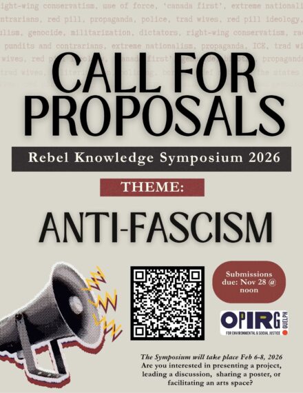 OPIRG is looking for student and community proposals for our upcoming Rebel Knowledge Symposium! The Symposium is a convergence of academic and community research, activism, and art, with a focus on FIGHTING BACK AGAINST FASCISM đ˘