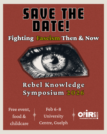 Save the date for OPIRG Guelph’s 2026 Rebel Knowledge Symposium! This year will focus on FIGHTING BACK AGAINST FASCISM !!!